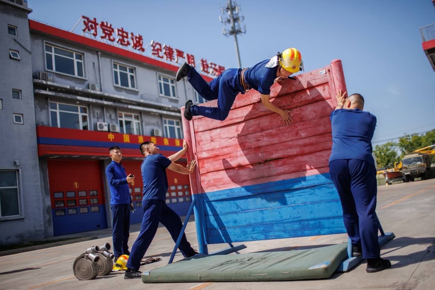 2023年5月8日,北京市怀柔区消防救援支队雁栖消防救援站队员正在训练。 新京报记者 王子诚 摄