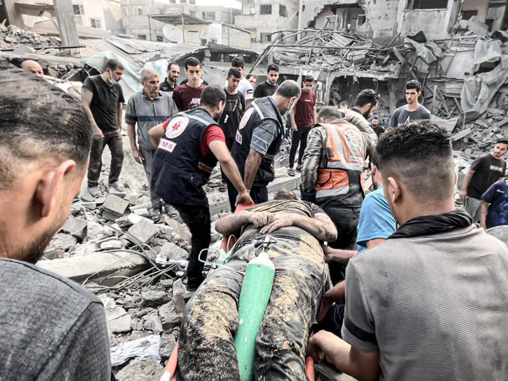 当地时间2023年11月12日,加沙地带,巴以战斗持续进行,搜救行动正在进行。