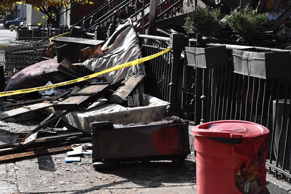 当地时间2023年11月12日,美国纽约市布鲁克林区,一栋住宅楼发生火灾后现场废墟一片。