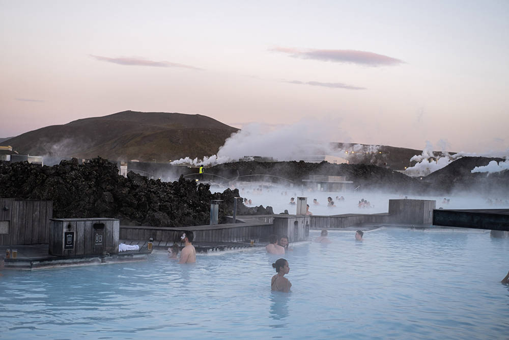 当地时间2023年11月8日,冰岛雷克雅内斯半岛格林达维克镇,游客在享受蓝湖地热温泉。