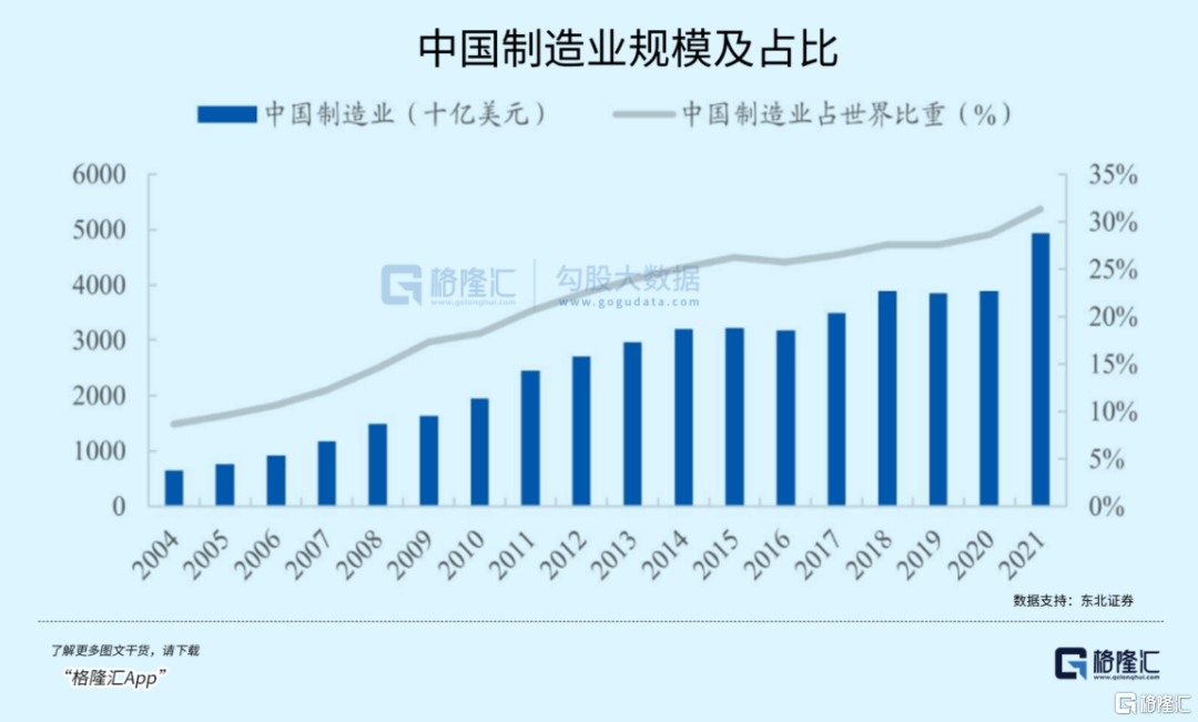 所以你能看到,过去20年,中国制造不仅没有停下扩张的脚步,反而创造了一个举世震惊的经济繁荣周期。