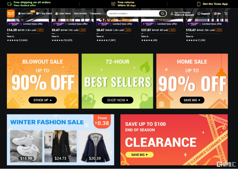 所以你能看到,在Temu上,3美元的手表,4美元的t恤,沙发、数码相机、智能家电等不到10美元就能拿下,老外们哪见过这场面。