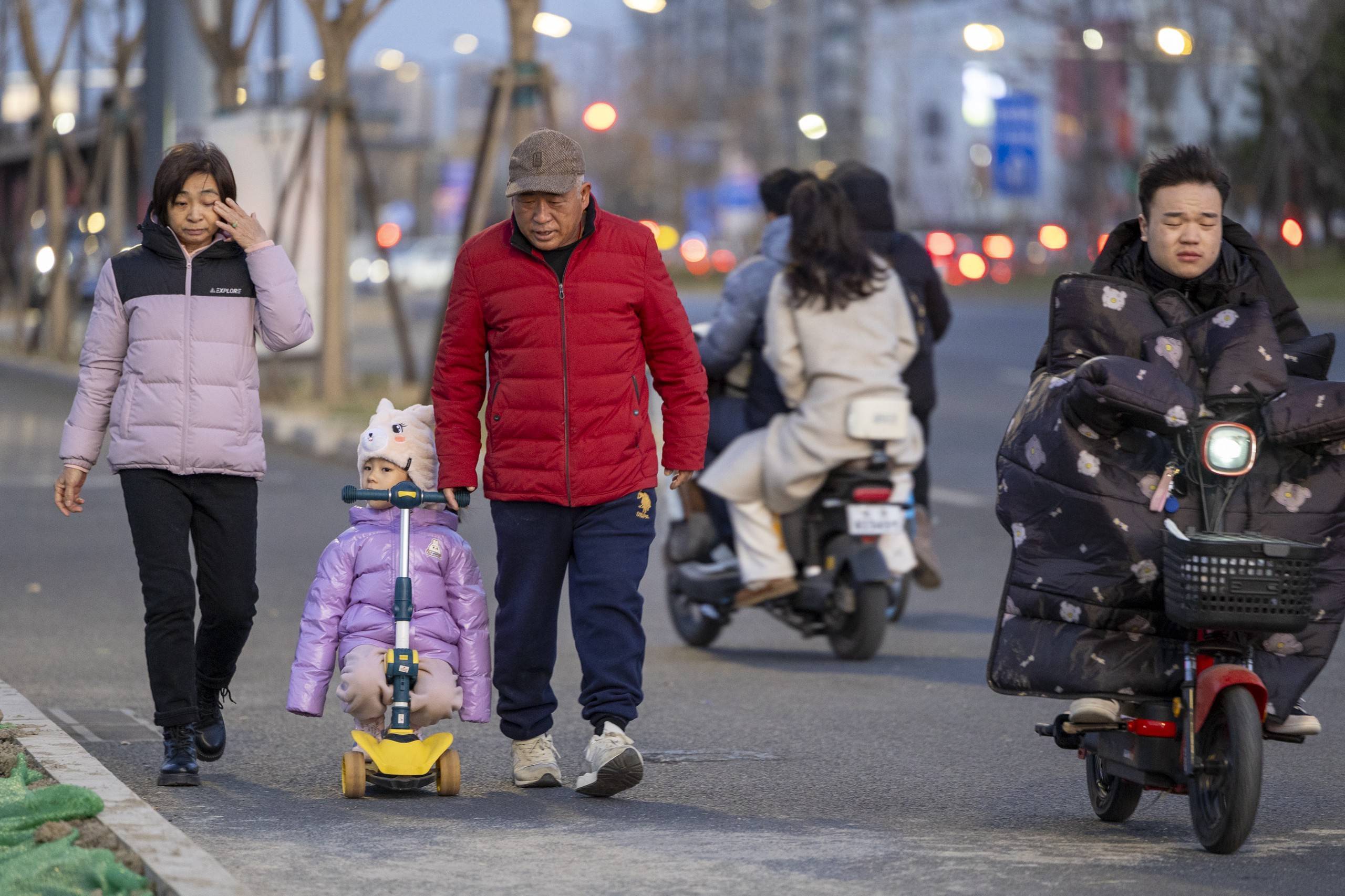 2023年11月27日,北京,街头市民穿上羽绒服等保暖冬装出行,抵御寒潮。
