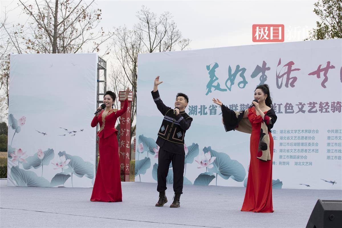 半途雨色半晴天,西向潜江汉水边。活动在《荆楚欢歌》中拉开序幕,活力四射的青春舞蹈拉近了与群众的距离,随后而至的民歌联唱、戏曲串烧更是令人眼前一亮。本场活动由武汉广播电视台主持人郭强、荆州电视台主持人朱玉娟联袂主持,湖北电视台青年导演吴俣执导。