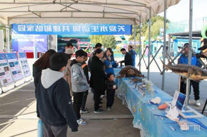 活动为水生野生动物保护科普志愿者进行绶带,现场还设置有科普展位,向广大市民展示海洋世界生物标本和宣传展板,现场发放水生野生动物保护科普宣传手册400余份。