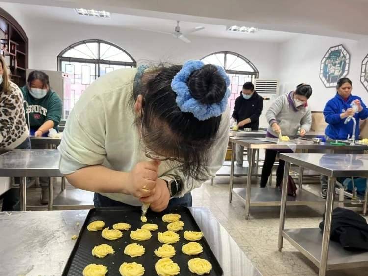 西式面点师的比赛现场香气扑鼻,调制面团、生胚成型、点心成熟......专业评委和街道专职残疾干部们正在严格打分,评定项目的一二三等奖。现场评委上海开放大学杨浦分校培训教师林秀云介绍,打分主要看选手现场操作流程是否符合规定,此外成品展出质量也占很大分数比例。