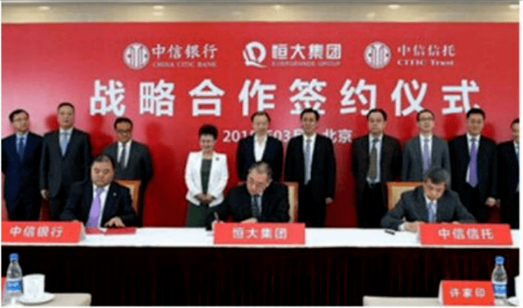 2017年初,中信银行与恒大集团更达成了一个“千亿+”的合作协议。同年,恒大分三次引入了战略投资人,中信信托控股的和信恒聚,名列第一批次。