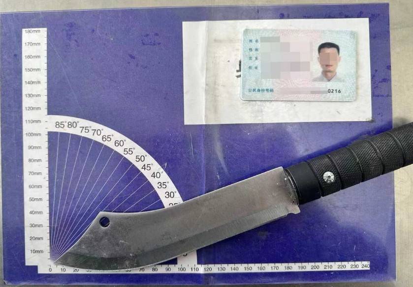 接警后,民警立即赶往现场处置,经现场询问,该男子称自己知道行李箱内携带有刀具,但该刀具只是用来切水果的,并不做其他用途。为进一步判定该刀具性质,民警随即将该男子传唤至车站派出所进行调查。经过测量,其携带的刀具刀身长度为190毫米、刀尖角度小于60度,根据公安部《管制刀具认定标准》规定,属于管制刀具。随后,民警向该男子进行了普法教育,详细讲解了普通刀具和管制刀具的区别。