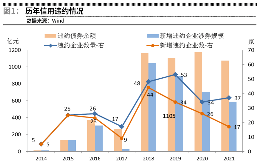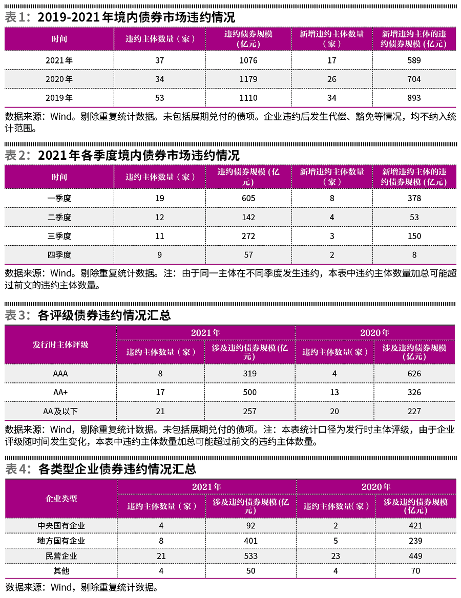 2021年,在局部信用紧缩的背景下,信用债违约表现出中高评级违约增多、国企违约保持增长势头、房企信用风险加速释放等特征。