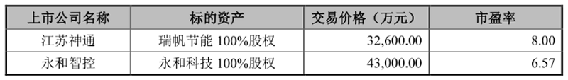 可以看到,上述交易对应的冠龙股份市值为5.4亿元,对应2018年和2019年交易市盈率分别为5.19倍和3.62倍;交易市净率分别为2.24倍和1.60倍。事实上,这一价格与市场价相比显著偏低。2017年度,冠龙股份同行业可比上市公司江苏神通发生资产重组;2021年度,上市公司永和智控拟出售相近行业标的资产(阀门管件相关业务),具体情况如下表: