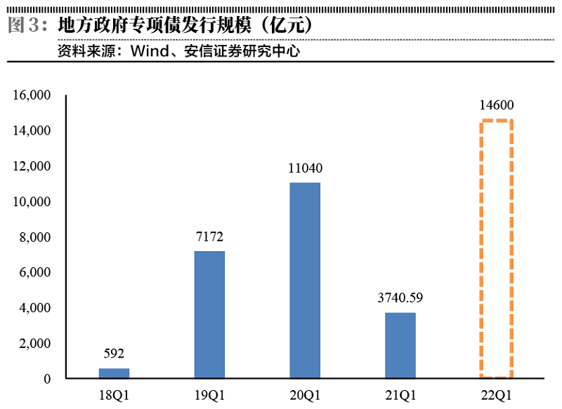 从微观调研来看,信用供给已经明显增加,融资需求也出现一些积极的变化。1)信用供给增加主要来自于政策推动,2022年政府专项债发行节奏的前置,一季度额度为1.46万亿元,而2021年一季度政府专项债发行量明显偏少。信贷方面,目前各家银行对202年新增信贷额度,普遍表示与2021年持平或者增加,信贷投放节奏上,2022年一季度约安排全年额度的40%,略高于2021年同期,因此,我们预计实现信贷“开门红”的概率会比较高。