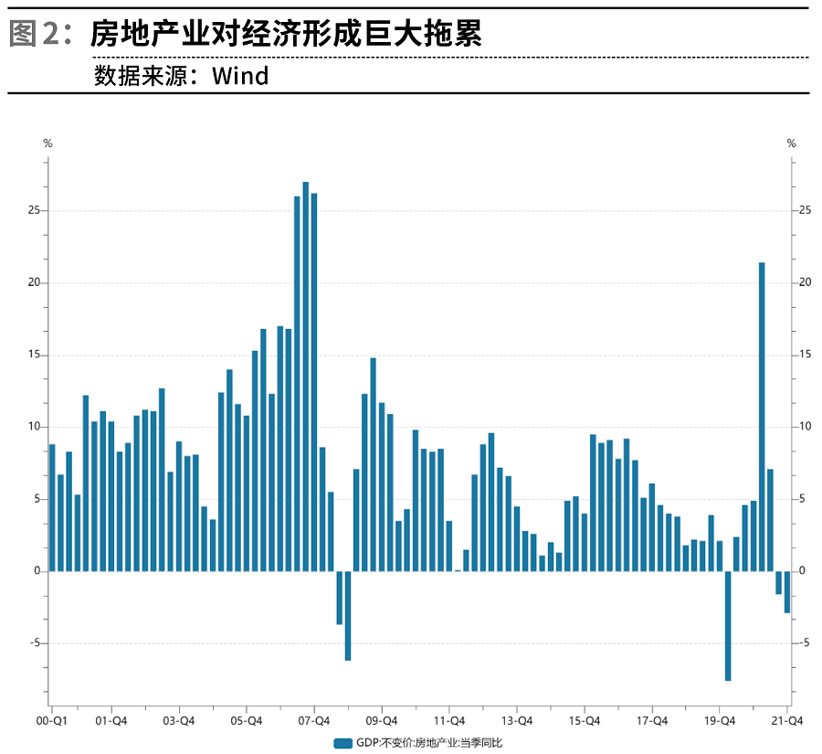 从GDP(不变价)的口径看,2021年三季度房地产业同比下滑1.6%,比二季度大幅下降8.7个百分点,四季度房地产业同比下滑2.9%,情况仍在继续恶化。