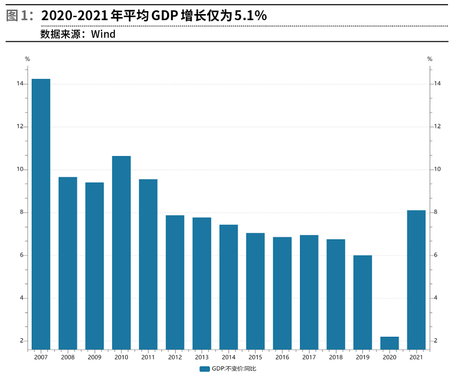 广发证券认为,简单按匀速估算,如果第一个五年平均GDP增速为5.3%,第二个五年平均GDP增速为4.8%,第三个五年平均GDP增速为4.2%,就可以实现2035年的远景目标。如果我们把2020-2021年两年平均5.1%的GDP增长作为疫情影响下的“十四五”首年增速,那么2022-2025年平均GDP增速在5.3%-5.5%将是合理的。