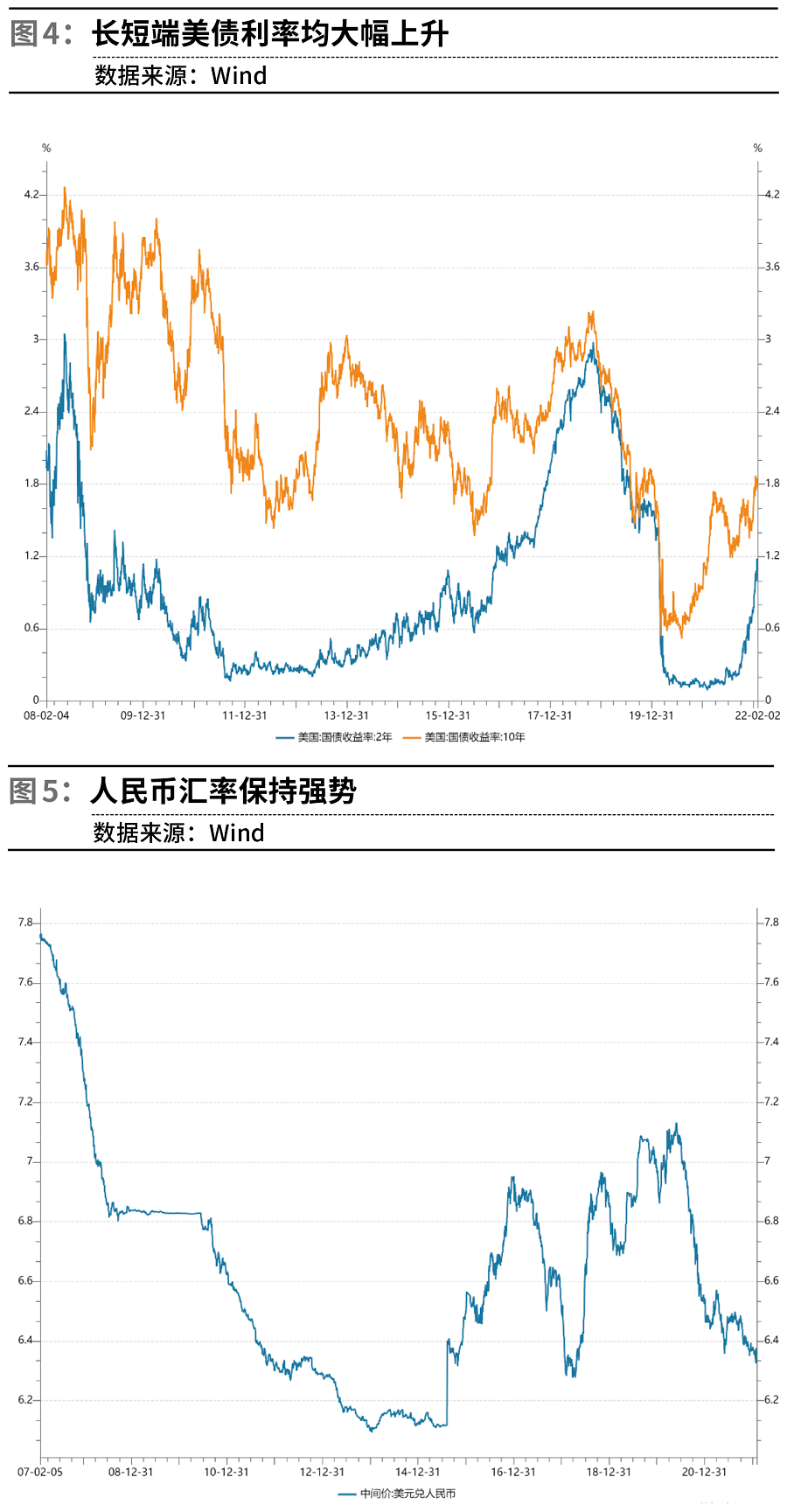 1月的美联储议息会议释放了更多“鹰派”的信息,美联储的整个紧缩步调都大幅提速。会议声明指出,“由于通货膨胀率远高于2%,且劳动力市场强劲,委员会预计很快将达到加息的标准。”美联储主席鲍威尔在新闻发布会中表示,如果条件具备,美联储将在3月加息,为了应对高企的通胀,不排除在每次美联储会议都加息的可能性。而且市场把鲍威尔的言论做了更加鹰派的解读——“可能每次美联储议息会议都会加息”。