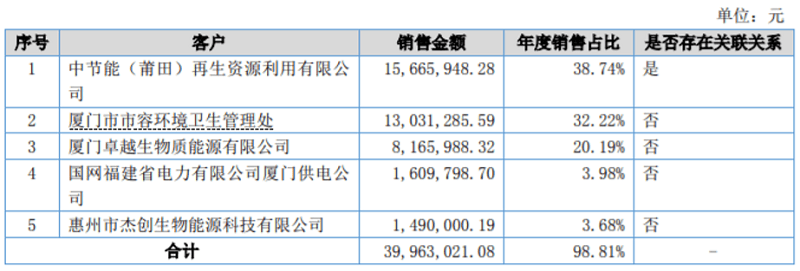 这一问题在其他年度同样存在。招股书显示,2016年卓越新能向前十大客户销售的情况如下表所示: