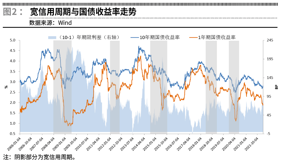 宽货币是宽信用的起点,因而在宽信用周期启动前,国债收益率已进入下行通道。宽信用初期,国债收益率震荡回落,且短端下行幅度更大。目前中国尚未进入宽信用周期,国债收益率仍有一定的下行空间。