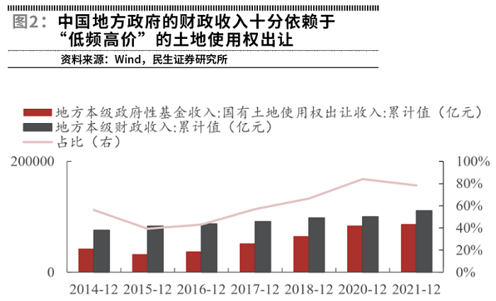 过往来看,中国的财政收入并不十分依赖于这类“高频低价”的商品,然而对于“低频高价”的土地使用权出让却十分依赖,“低频高价”的房地产所支撑的土地使用权出让收益在财政收入中的重要性远超过了古代的铁具。