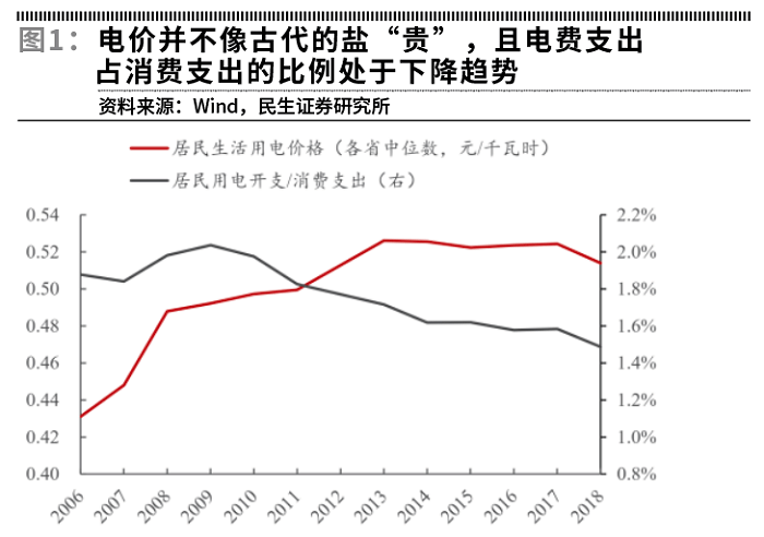 首先,目前电价并不像古代的盐那么“贵”,电费支出占消费支出的比例基本上在2008年之后一直处于下降的趋势,这预留了部分价格提升的空间。