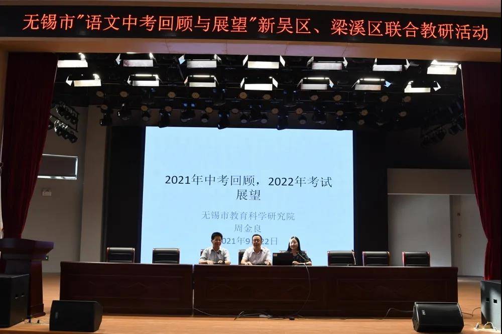 9月22日下午,无锡市“语文中考回顾与展望”新吴区、梁溪区联合教研活动在新吴区第一实验学校报告厅举行。来自梁溪区、新吴区各个中学的初三语文教师们齐聚一堂,积极参与本次教研活动。